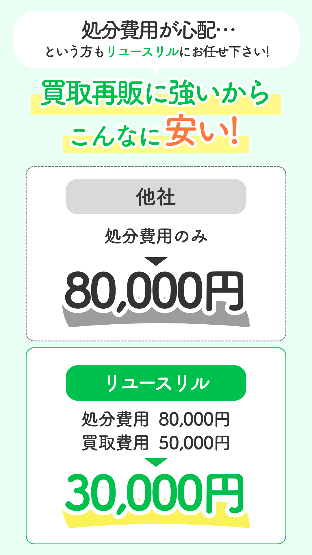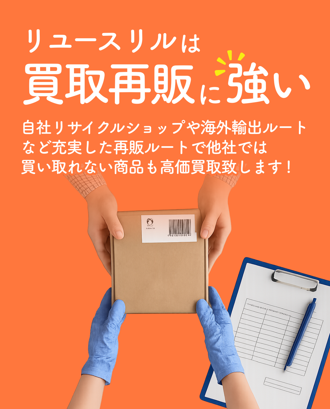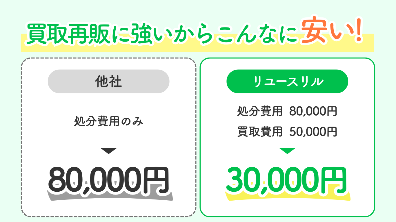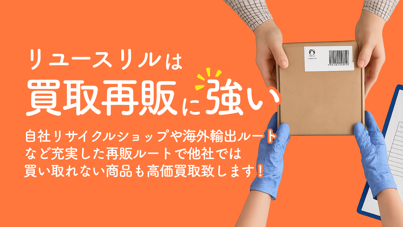 リユースリルの自社リサイクルショップや、 独自の海外輸出ルートがあるため、他社では 金額がつけられないものでも買取再販することが可能です。