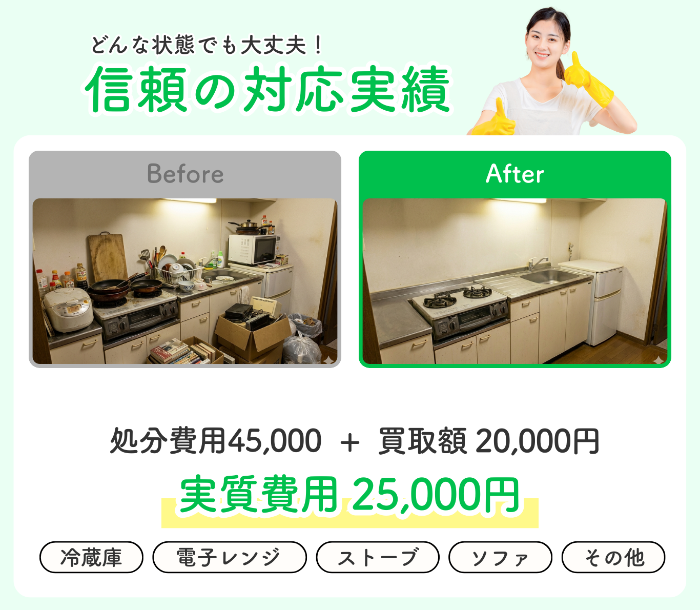 事前のお見積もりから1円も変わりません。作業後の不当な追加請求は一切なし! 料金に関する不安を解消し、安心してご利用いただけます。 お得な「トラック積み放題プラン」もご用意しております。