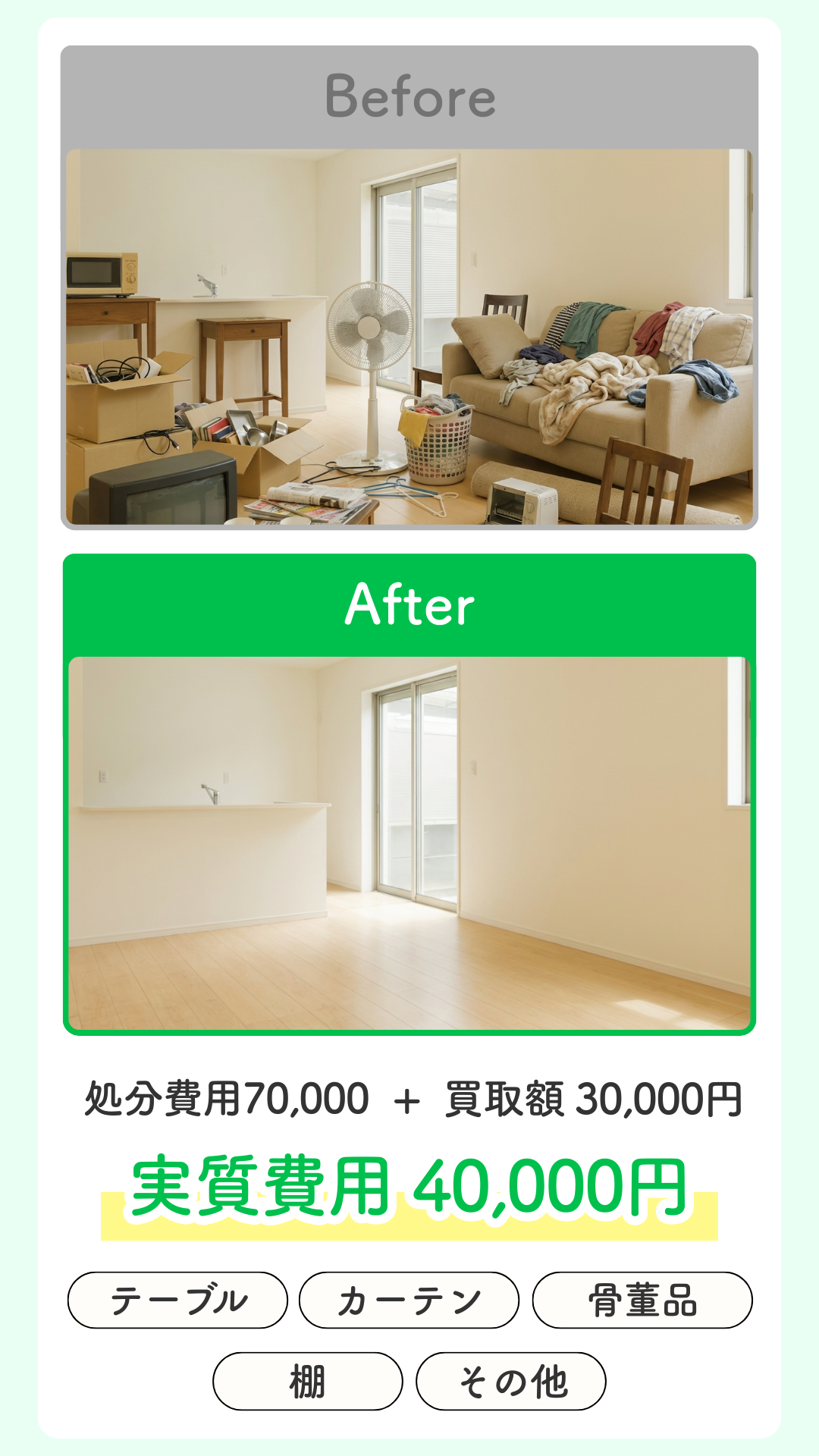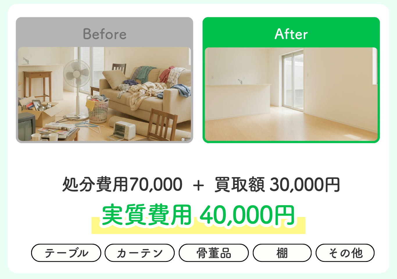認定遺品整理士が心を込めて対応。思い出の品を大切に扱います。